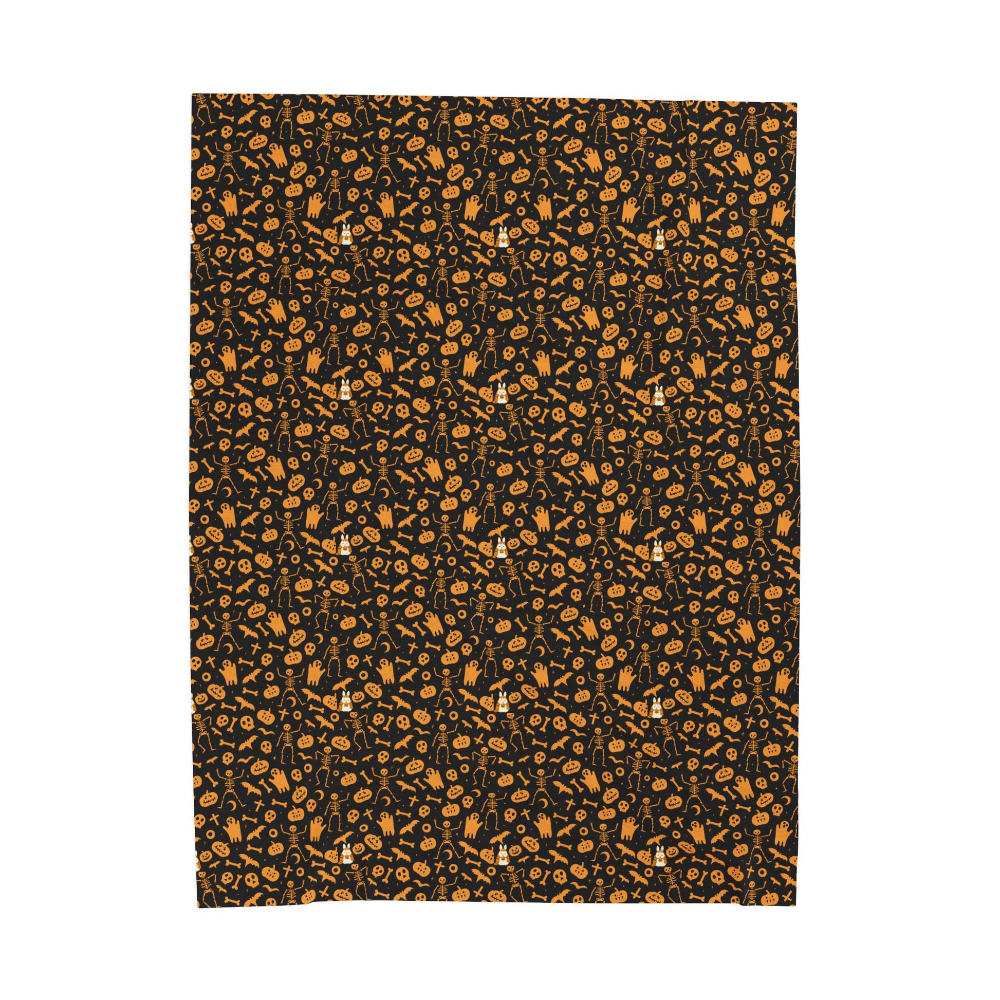 Wrap yourself in spooky-season comfort with our Spooky Cozy Halloween Blanket, featuring a festive all-over print of pumpkins, bats, ghosts, and candy in rich orange tones on a sleek black background. 🧡