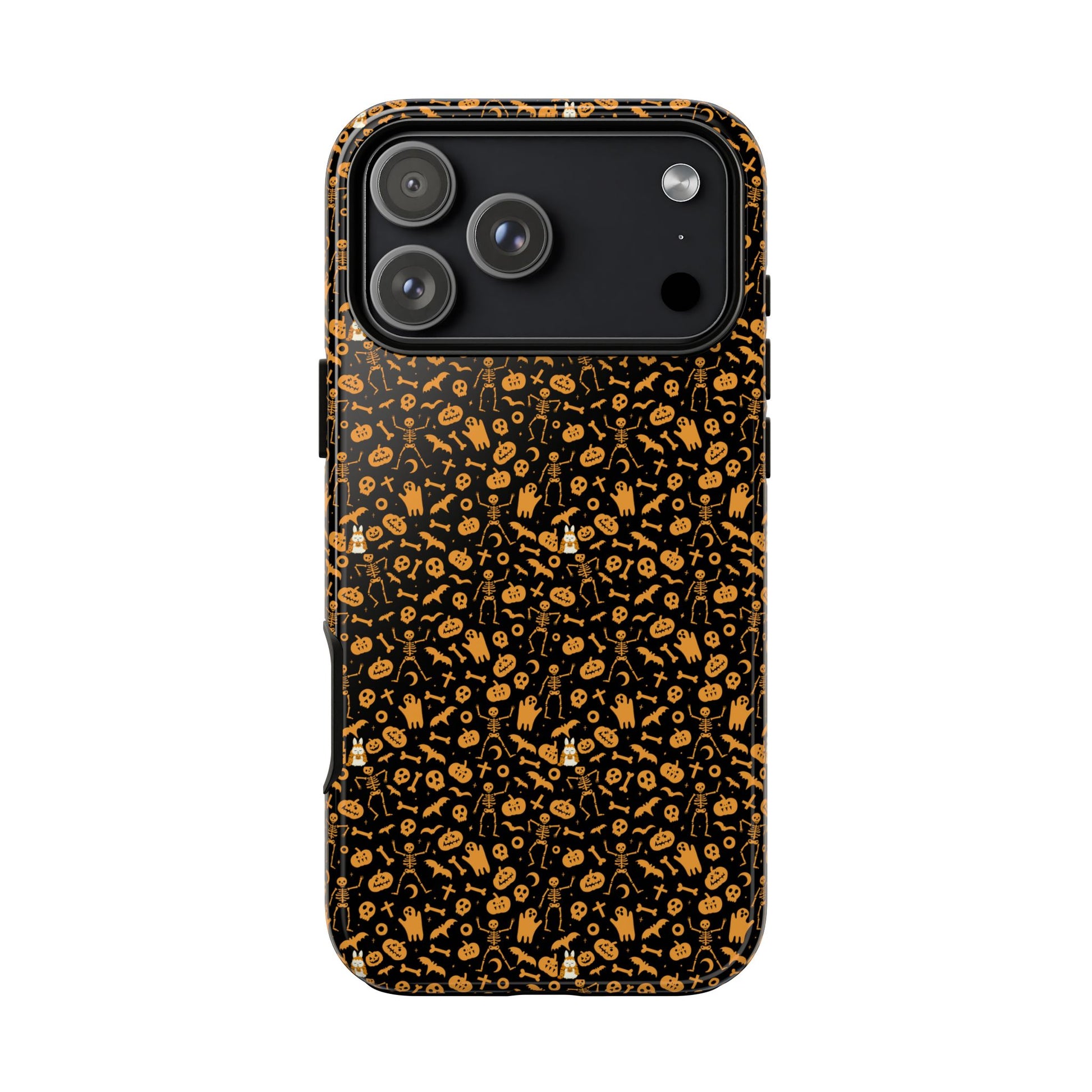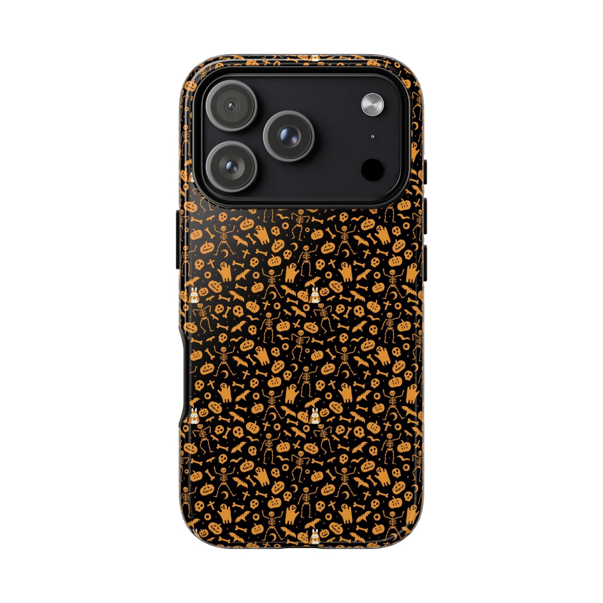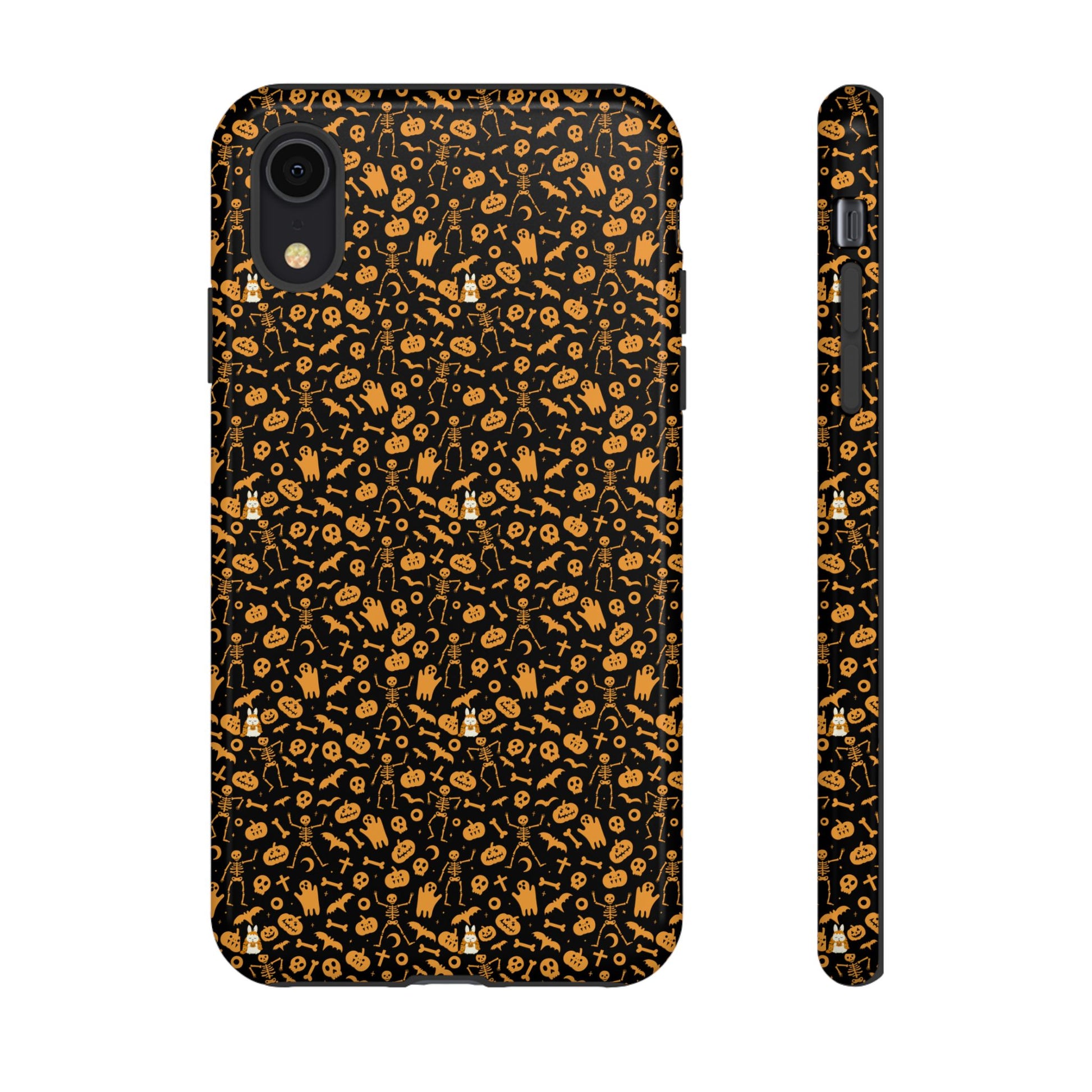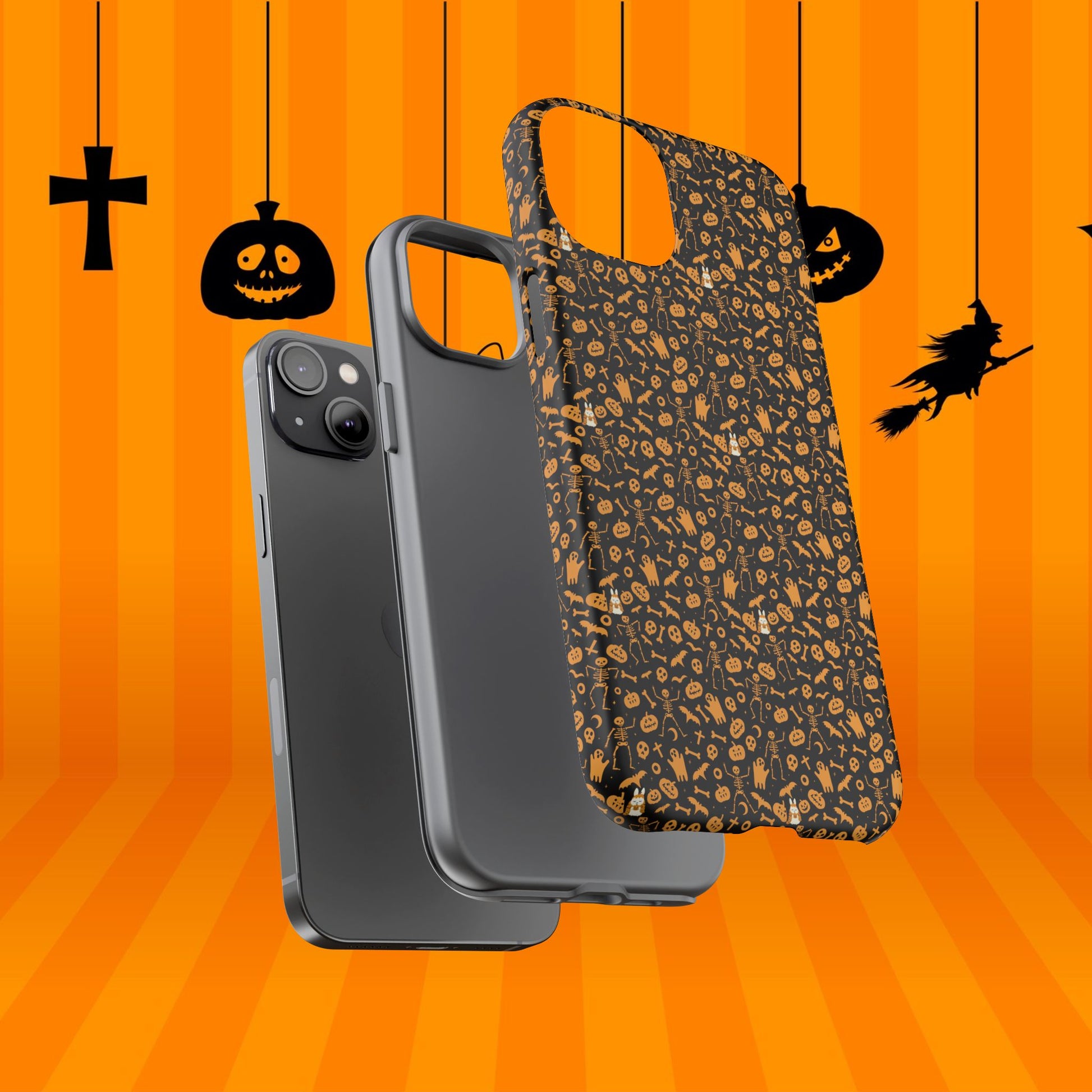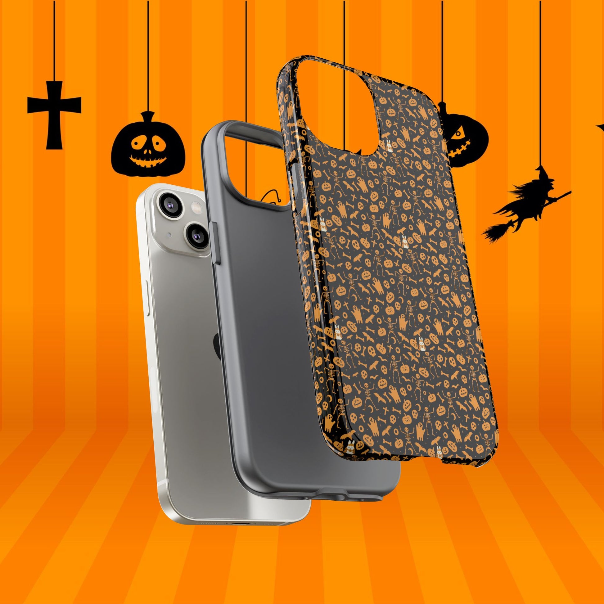 Bring your spooky style everywhere you go with the Spooky Icons Halloween Hard Phone Case! This sleek, durable case features a premium glossy finish and a bold all-over Halloween icon pattern — complete with pumpkins, ghosts, skeletons, bats, and candy details in festive orange and black. Made to protect your phone from bumps and scratches while adding a seasonal aesthetic that turns heads.