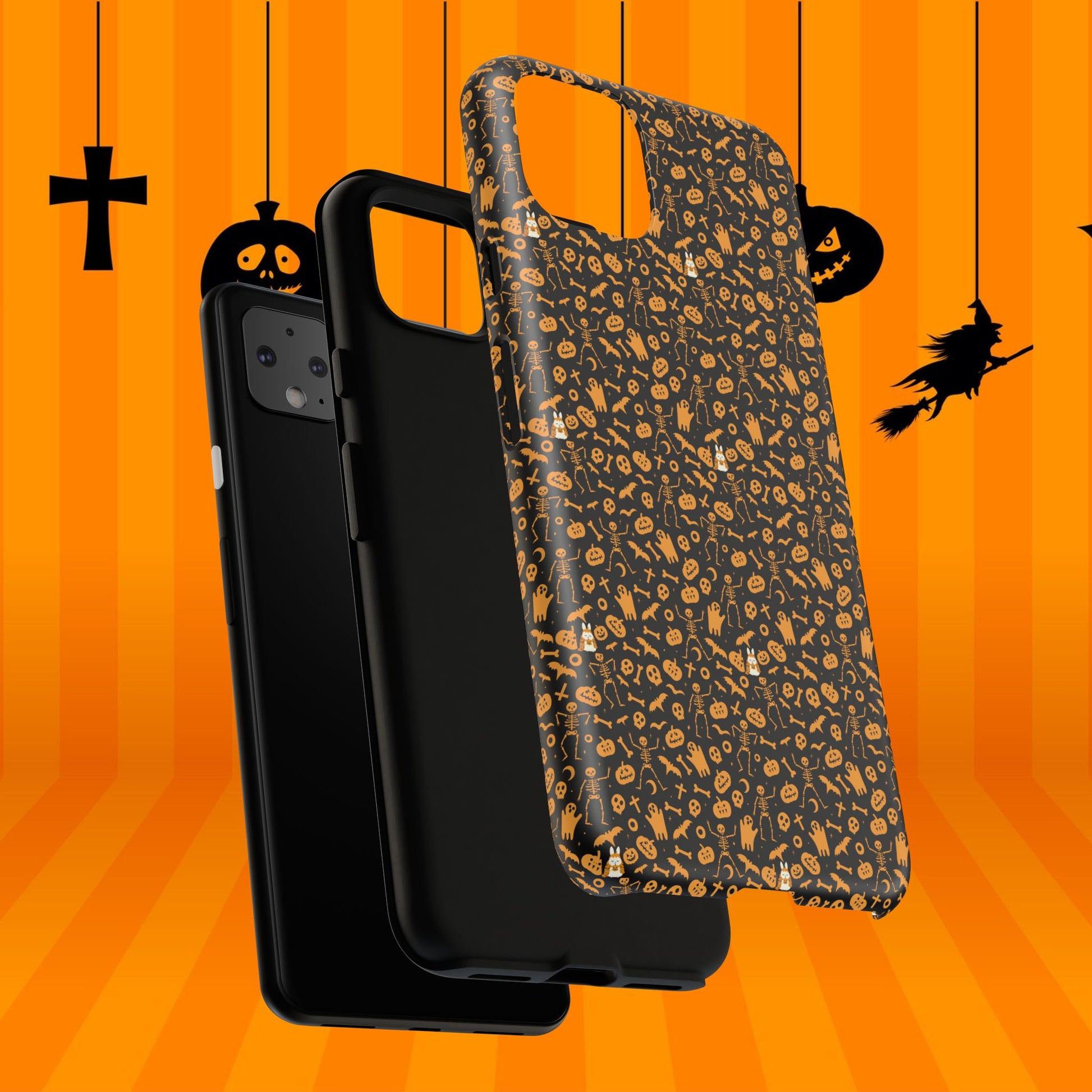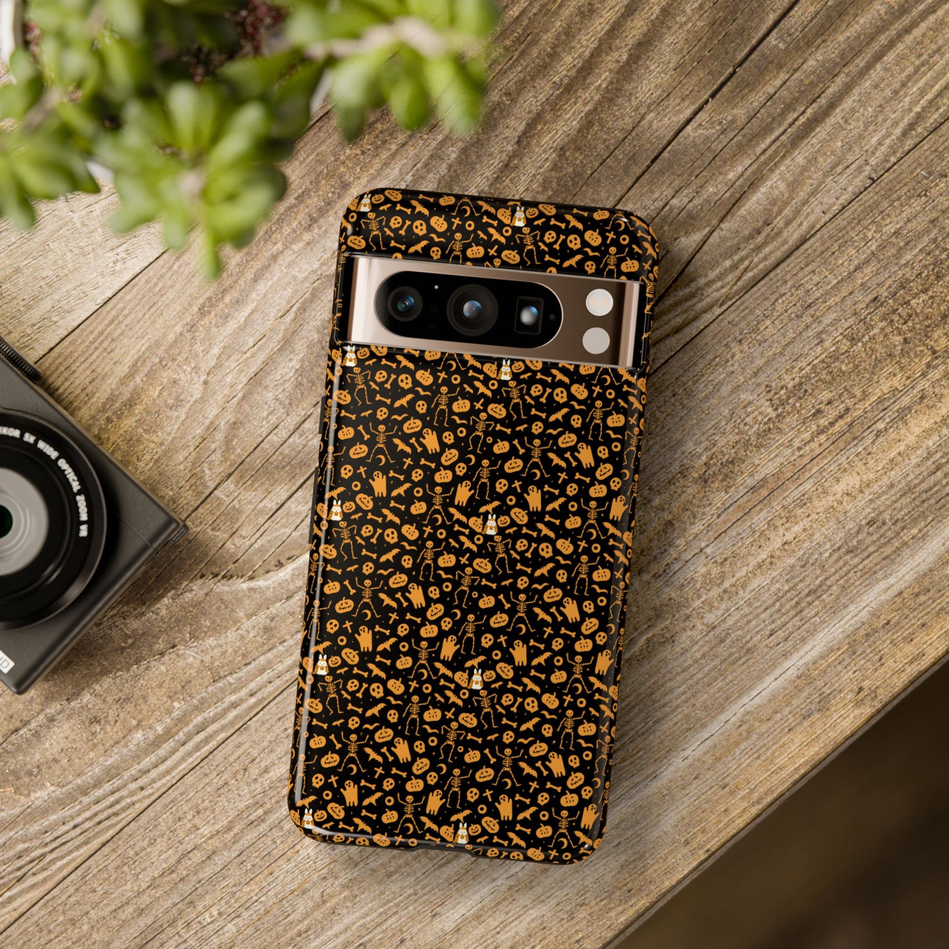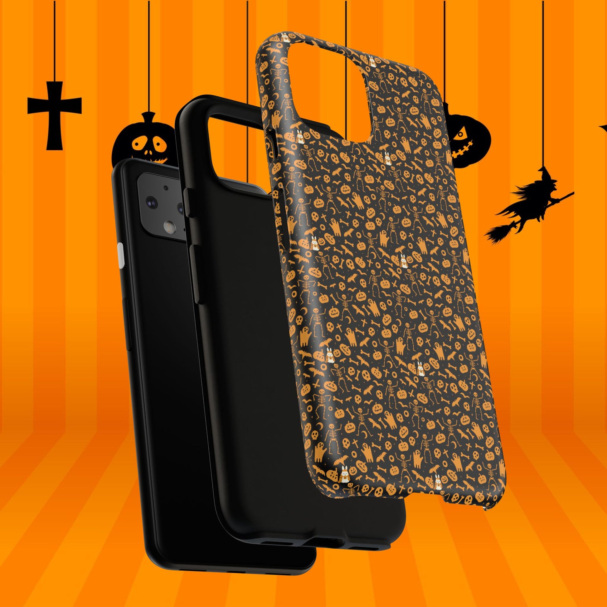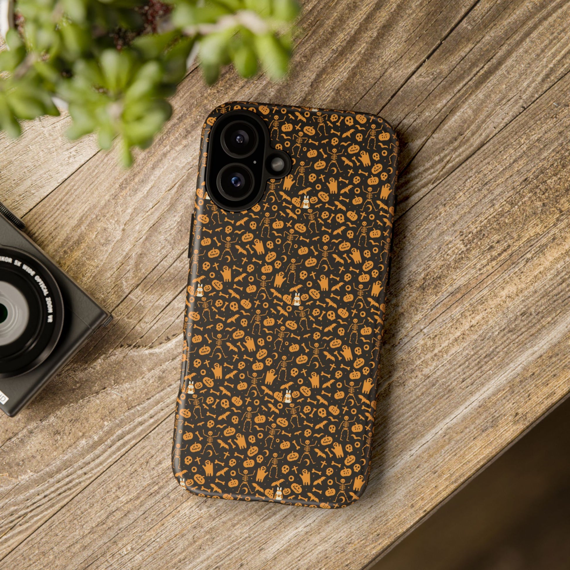 Bring your spooky style everywhere you go with the Spooky Icons Halloween Hard Phone Case! This sleek, durable case features a premium glossy finish and a bold all-over Halloween icon pattern — complete with pumpkins, ghosts, skeletons, bats, and candy details in festive orange and black. Made to protect your phone from bumps and scratches while adding a seasonal aesthetic that turns heads.