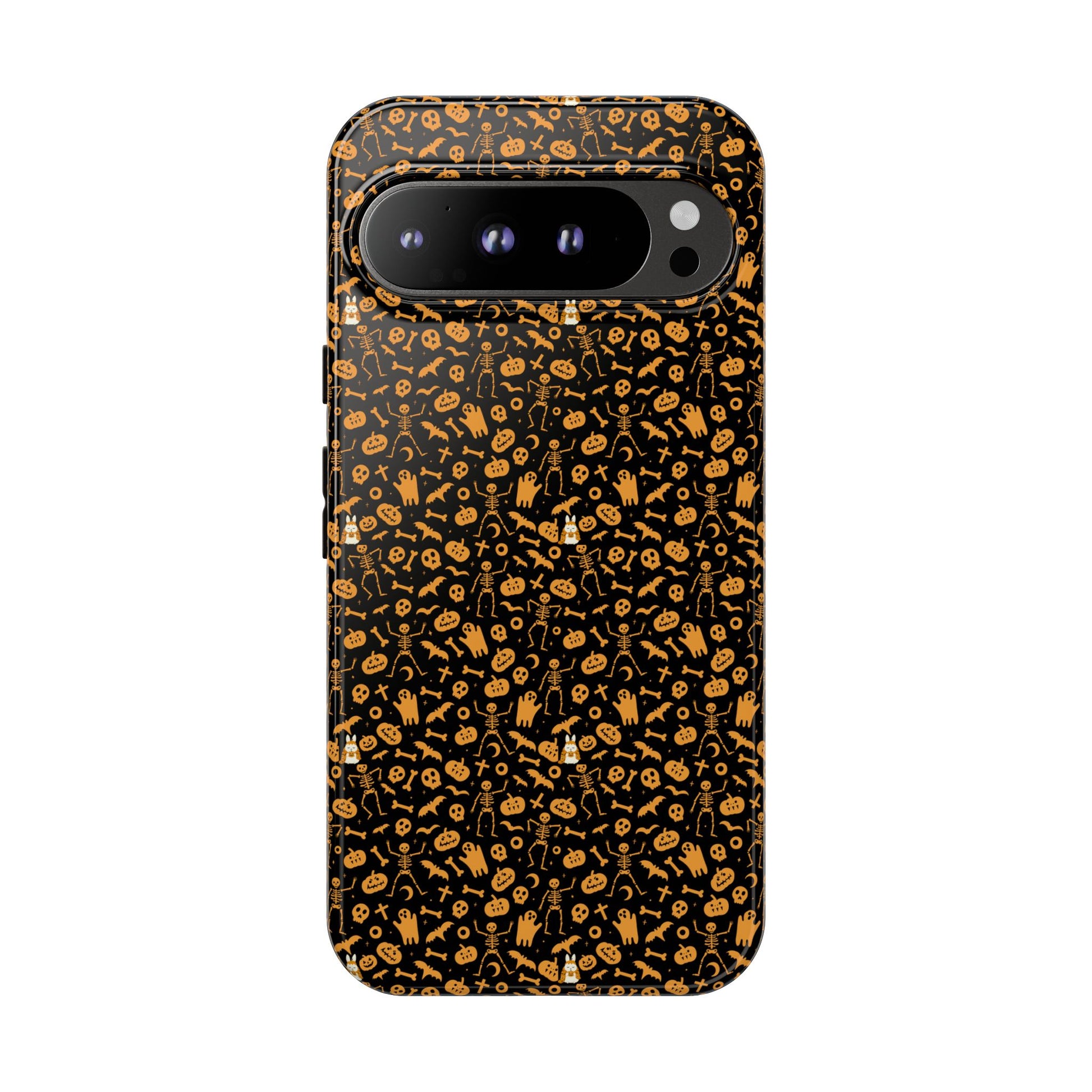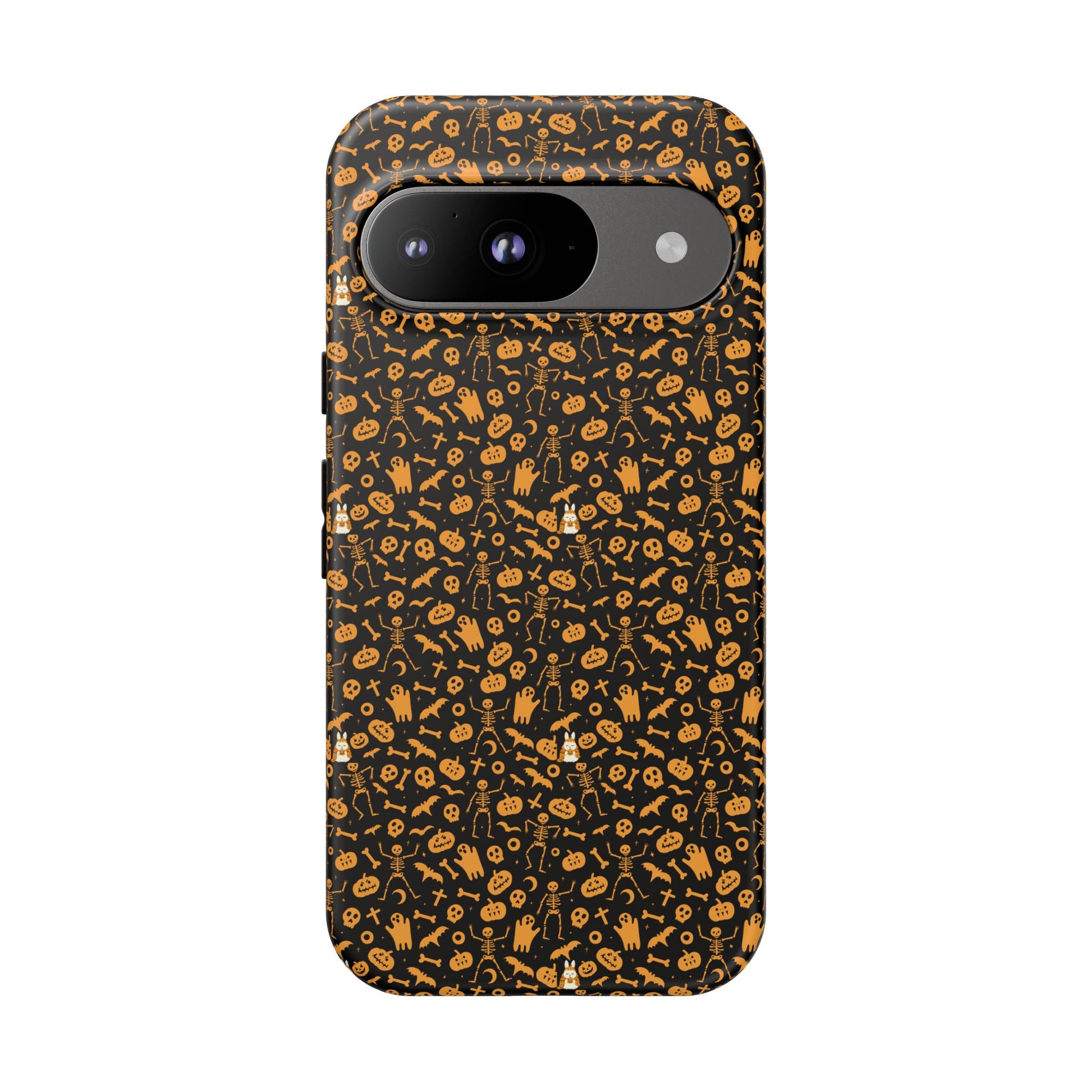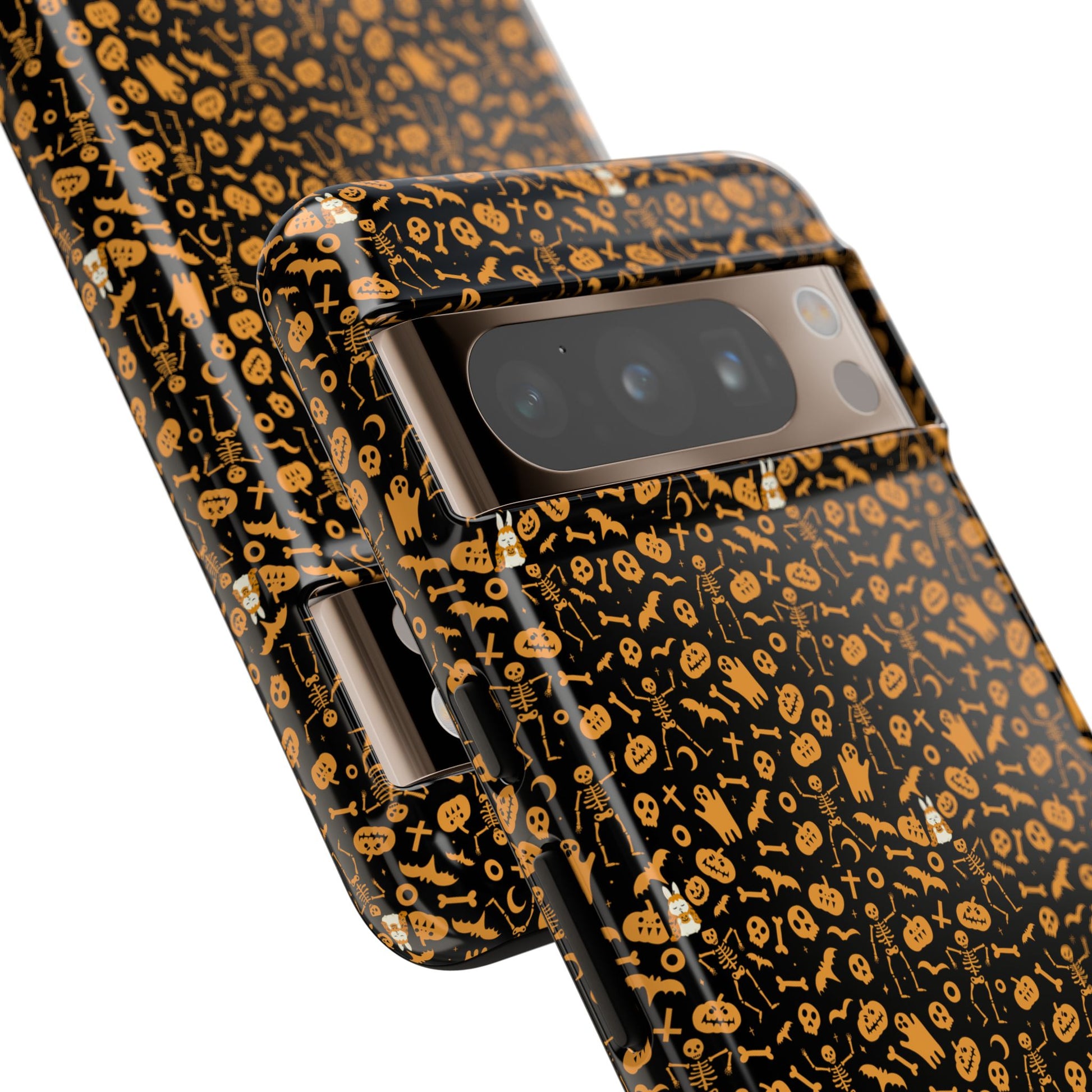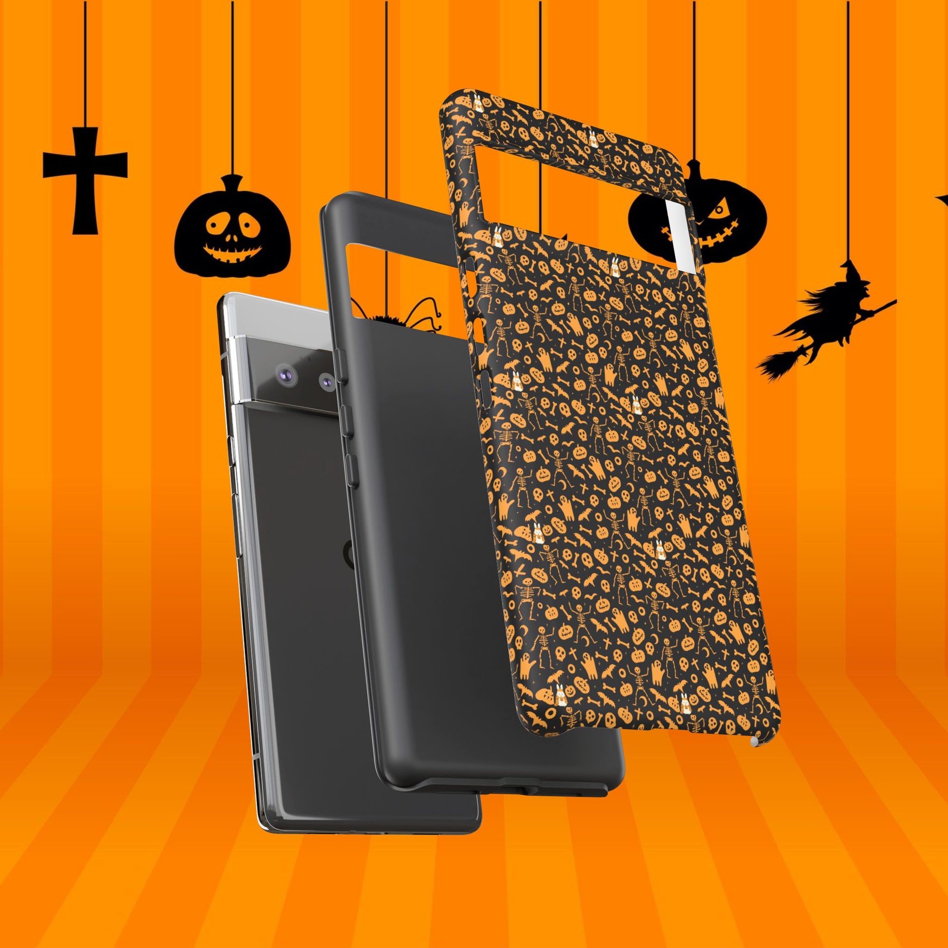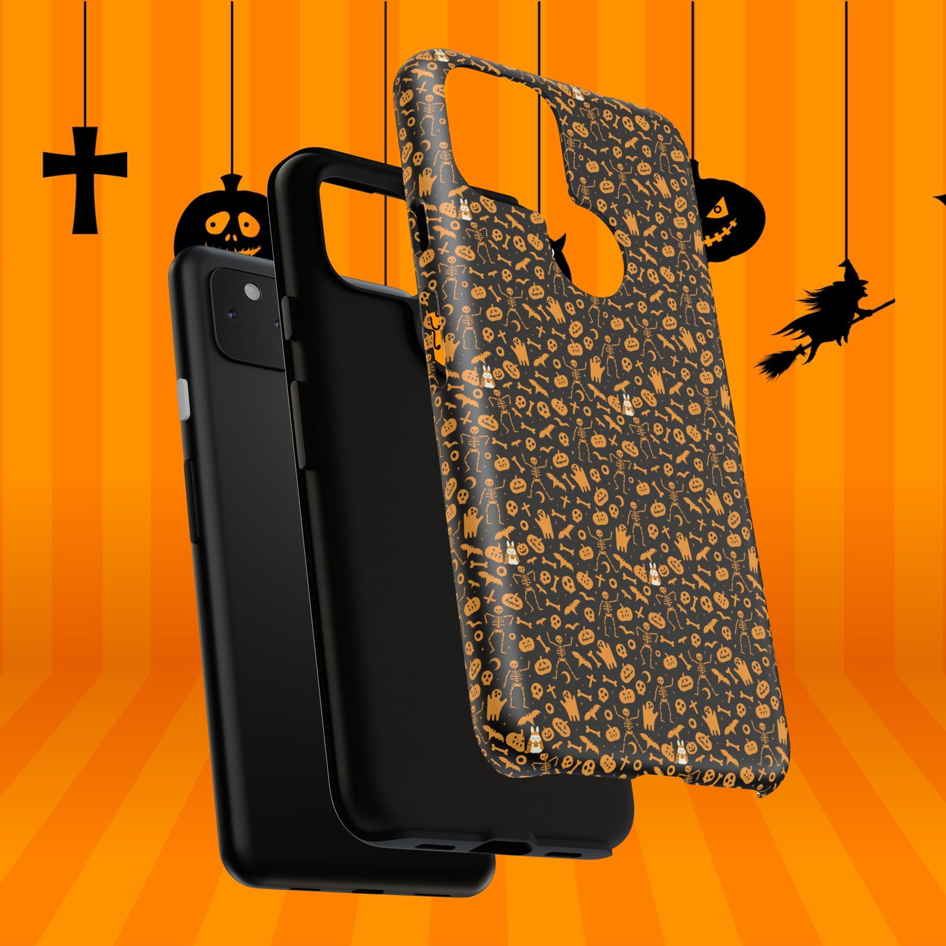 Bring your spooky style everywhere you go with the Spooky Icons Halloween Hard Phone Case! This sleek, durable case features a premium glossy finish and a bold all-over Halloween icon pattern — complete with pumpkins, ghosts, skeletons, bats, and candy details in festive orange and black. Made to protect your phone from bumps and scratches while adding a seasonal aesthetic that turns heads.